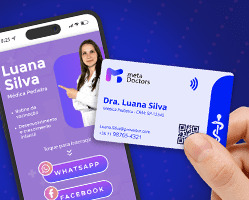 Se você ainda usa cartão de visita de papel, precisa conhecer o metaCard e providenciar já o seu cartão digital! Personalize com seus dados e facilite a troca de informações para pacientes e profissionais da saúde.