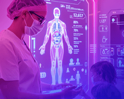 - Tendências até 2028: IA generativa, gêmeos digitais e novos modelos de formação médica