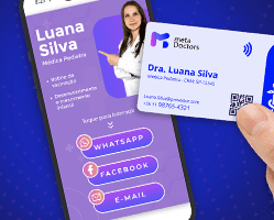Tenha na palma de sua mão, um cartão personalizado, com suas redes sociais, especialidades, nome e telefone, além disso acople seu minisite profissional, com conteúdos personalizados e acesso fácil.